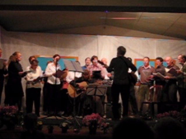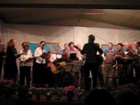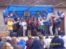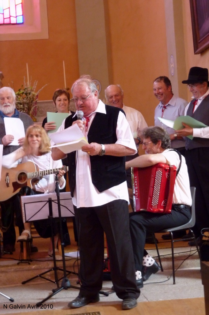 Il y a eu une messe, puis un arbre a été planté en mémoire du centcinquantenaire du rattachement de la Savoie à la France. Après le repas, un concert a été donné dans l’église. Pour commencer, Dorine nous a interprêté de façon remarquable le pouvoir des fleurs de L. Voulzy, et Manhattan Kaboul de Renaud Sechant. Puis les Grillons ont donné de la voix presqu’en même temps que leurs frères des champs, réveillés depuis peu. Douze chansons ont été chantées dans la bonne humeur et la joie, plus une dans le recueillement et l’émotion en mémoire des déportés de la seconde guerre mondiale, dont c’était le jour commémoratif. Merci aux gens de Gerbaix pour leur accueil, la troisième mi-temps fut mémorable ...