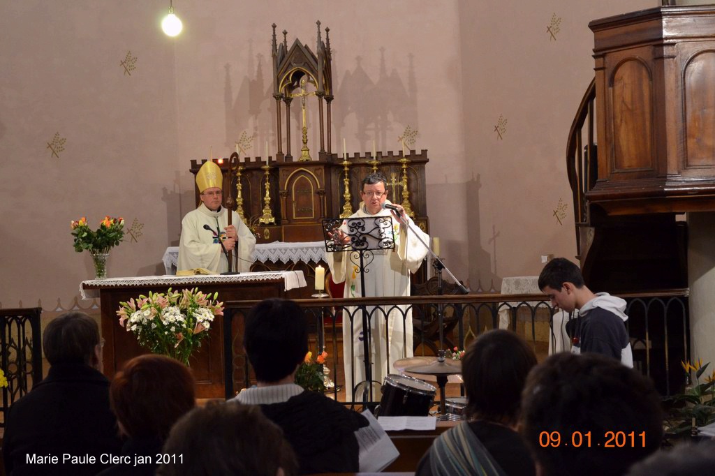 Le dimanche 9 janvier dans notre église bien nettoyée et superbement fleurie, nous avons eu l'honneur d'accueillir l'évêque qui a célébré une messe animée par les jeunes de l'aumonerie. Le vin d'honneur servi dans la salle de l'école à l'issue de cette messe lui a permis de rencontrer les paroissiens avant de partager le repas des jeunes. Un grand merci à la municipalité et à tous ceux qui ont assuré le succès de cette journée.