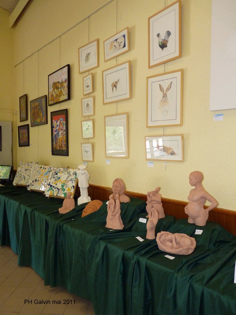 Comme tous les deux ans, la section d’art local encadrée par ses quatre muses Jocelyne, Dominique, Valérie et Marie Laure a exposé les oeuvres réalisées par les élèves des cours de dessin, de peinture et de sculpture réalisés depuis 2009. Les oeuvres de professionnels comme David Soudan , Kate , Nathalie Petit et bien d’autres, ainsi que de magnifiques photos d’oiseaux de Philippe Zen étaient également représentées. Les enfants n’étaient pas de reste, menés avec ferveur par Valérie.
