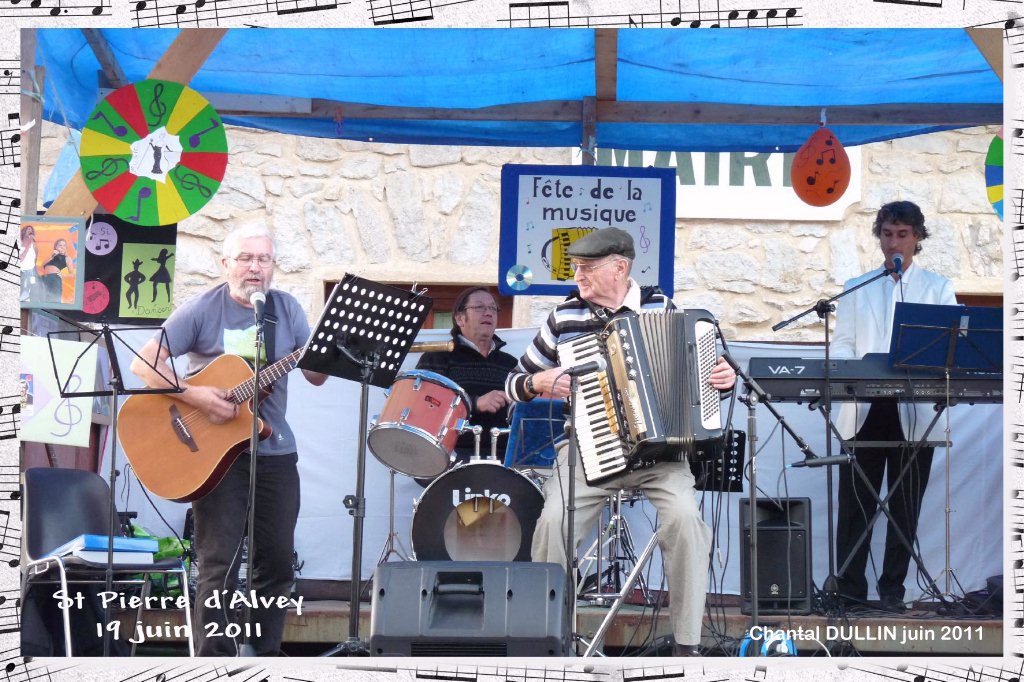 Cette année par chance, le beau temps était de la partie, pour cette troisième édition de la fête de la musique à St Pierre organisée par les GRILLONS, avec le concours de St Pierre Animation. Après un concert dans l’église avec les Grillons, Ludovic et Evelyne Debay au violoncelle, et avec la chorale de Music’Yenne menée par Sylvain Vandurme, le spectacle s’est poursuivi à l’extérieur sur les chars de Pierre, décorés par Jacqueline et Michel. Les enfants musiciens ont été suivis par les accordéonistes, puis par les chants des adultes: de belles voix qui ont charmé nos oreilles. Saint Pierre Animation a pu rassasier les affamés et assoiffés, et les petits gâteaux de Jacqueline ont fait un malheur. Un bal à papa a clos l’évènement public, les musiciens , chanteurs, organisateurs se sont retrouvés dans la salle des fêtes pour un pot de l’amitié. Les photos (merci à Jacqueline Excoffier, et à Chantal Dullin pour le beau montage qu’elle nous offre chaque année) en disent mieux qu’on long discours sur notre plaisir partagé. Et un grand merci à tous, organisateurs, chanteurs, musiciens, aides bénévoles ... |