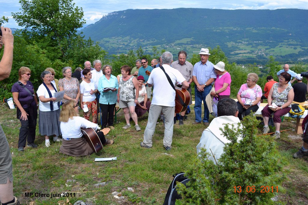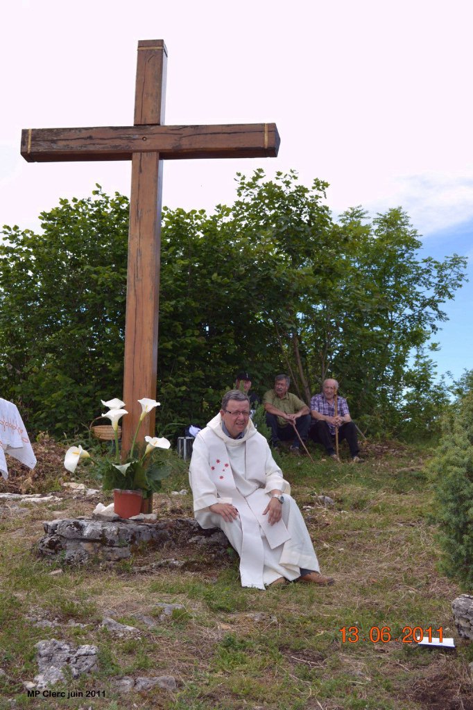Comme chaque année, nous nous sommes réunis à 15h à l’ancienne carrière du Collet. Après une bénédiction, la procession a emprunté le chemin de la source de la Cartari pour arriver au mont Chatel. Là haut, sur l’aire dégagée près de la croix, une messe a été dite par le père AUFFRET (soufrant actuellement et auquel nous souhaitons un prompt rétablissement). Les Grillons ont chanté, et après le goûter de l’amitié, nous sommes redescendus; nous donnons rendez-vous à l’an que vin, pour perpétuer cette belle tradition ! merci à Yvette RUBOD et à Marie Paule CLERC pour les photos! |