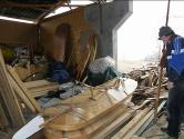 Pour faire un ski, Jean Louis assemble dans une presse, trois feuilles et un renfort central en frêne, avec une semelle en poly- éthylène et des carres à la partie inférieure. Le temps que la colle polyuréthanne prenne et on démoule un ski tout neuf auquel une couche de résine époxy ou de vernis donnera l’aspect fini. Et voilà, ça paraît tout simple mais on se doute bien que des années d’expérience se cachent derrière cette apparente facilité. Par exemple, les skis ne sont faits qu’en été pour éviter qu’ils ne se voilent à cause de l’humidité emprisonnée en hiver. |