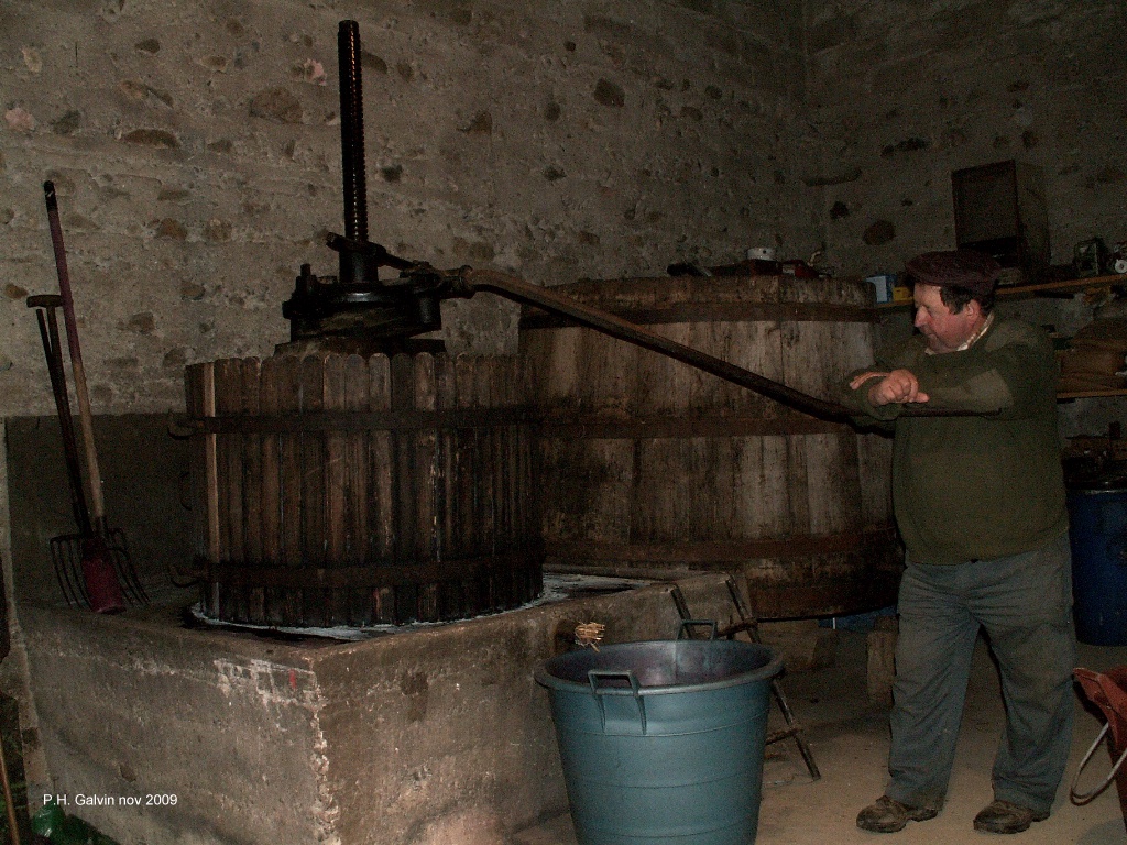 pour le blanc, les grappes broyées vont directement au pressoir; le jus est bouilli en tonneaux; la durée de fermentation, autour d’un mois, dépend du sucre du raisin et de la température. Le vin est ensuite transvasé dans un tonneau méché au soufre. Cette opération sera répétée en mars. |
