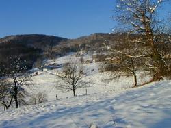 Notre position élevée (entre 400 et plus de 800 m d’altitude) nous vaut parfois la neige au printemps mais nous évite souvent le brouillard. |