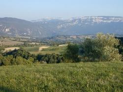 En face, il y a les montagnes du Chat et de l’Epine, que le Farou couronne parfois de nuées effilochées, et plus loin, la Chartreuse avec le Granier. |