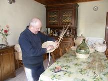 Marc raconte qu’il s’est pris de passion pour la vannerie tout gamin dans les années 35, en apprenant avec les anciens, au cours des veillées d’hiver d’autrefois. |